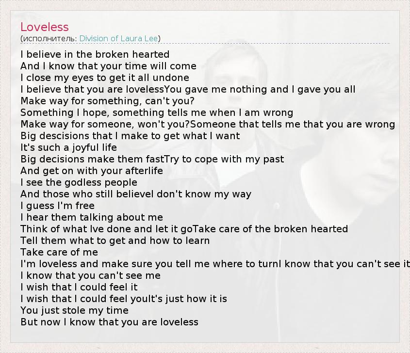 I believe that you are lovelessYou gave me nothing and I gave you all
