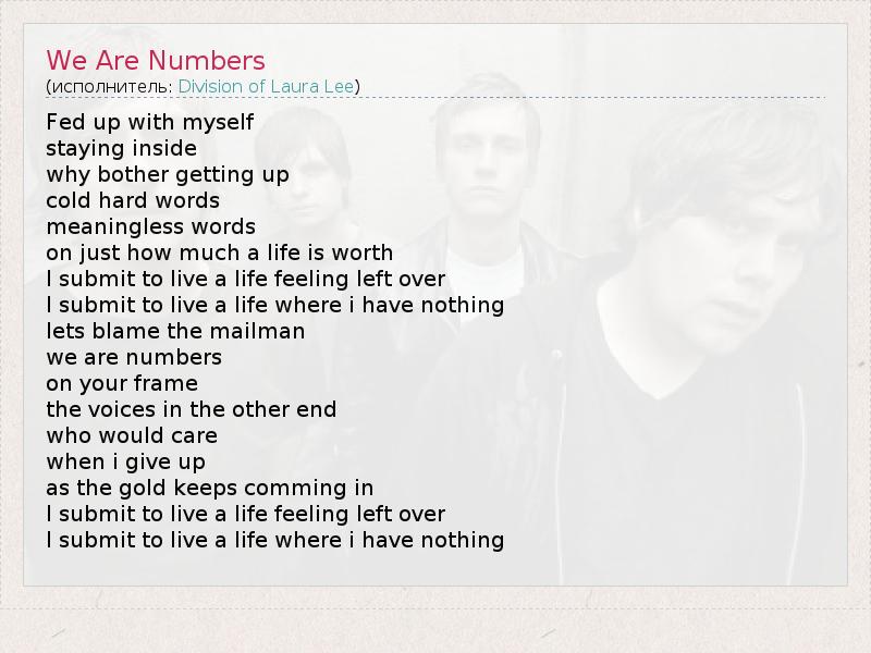 А как ты думаешь, о чем песня "We Are Numbers" ?