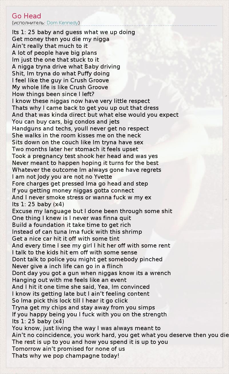 А как ты думаешь, о чем песня "Go Head" ?