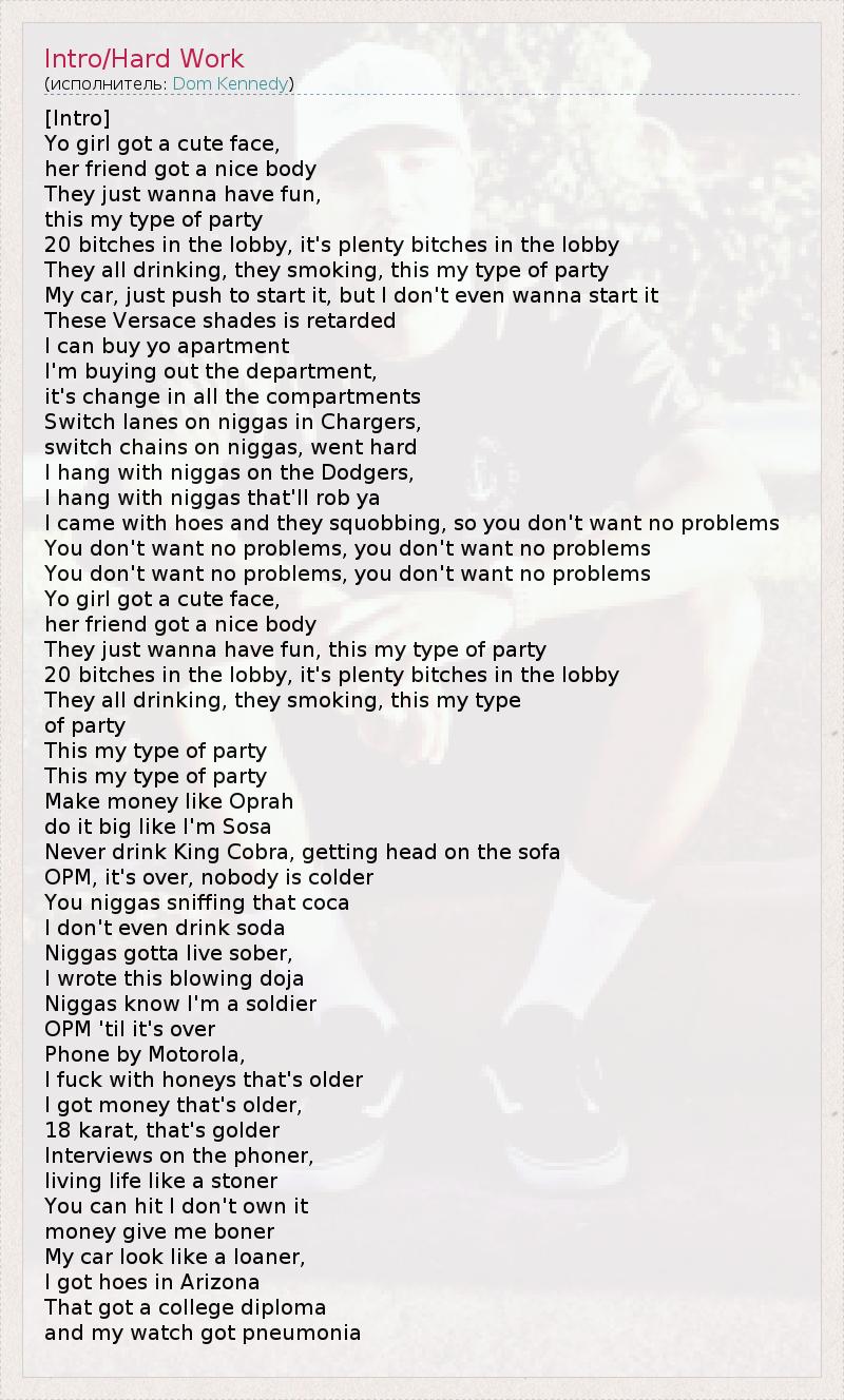 А как ты думаешь, о чем песня "Intro/Hard Work" ?