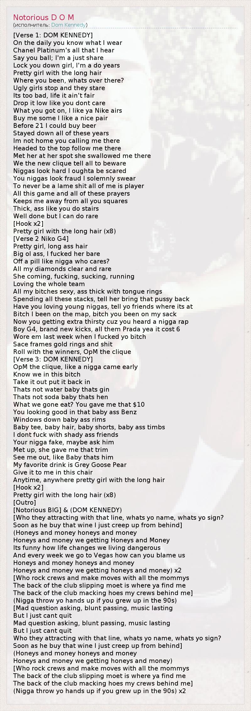 А как ты думаешь, о чем песня "Notorious D O M" ?