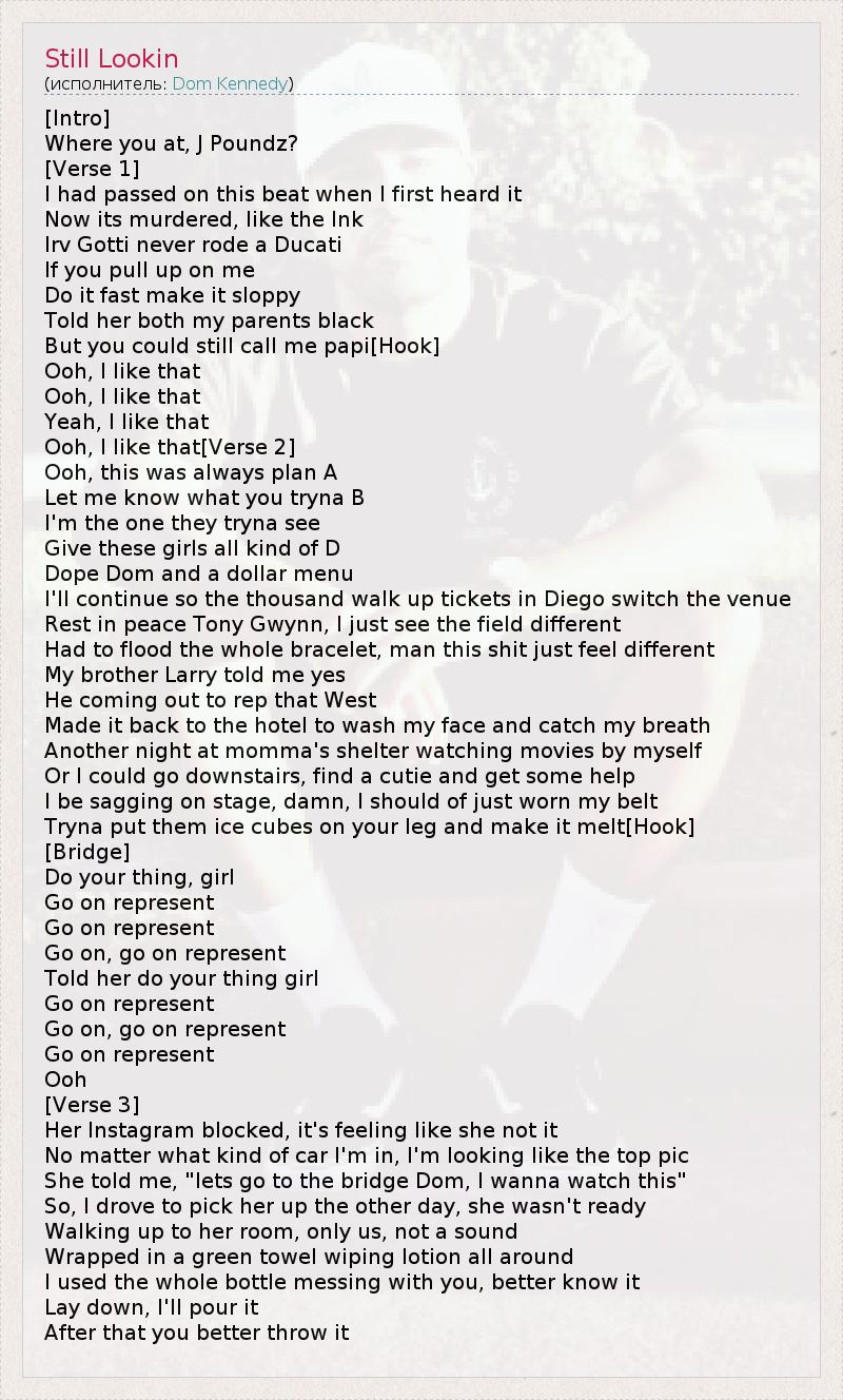 А как ты думаешь, о чем песня "Still Lookin" ?