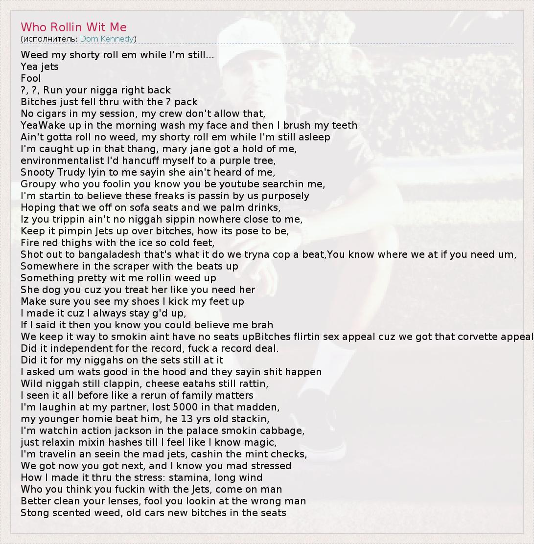 А как ты думаешь, о чем песня "Who Rollin Wit Me" ?