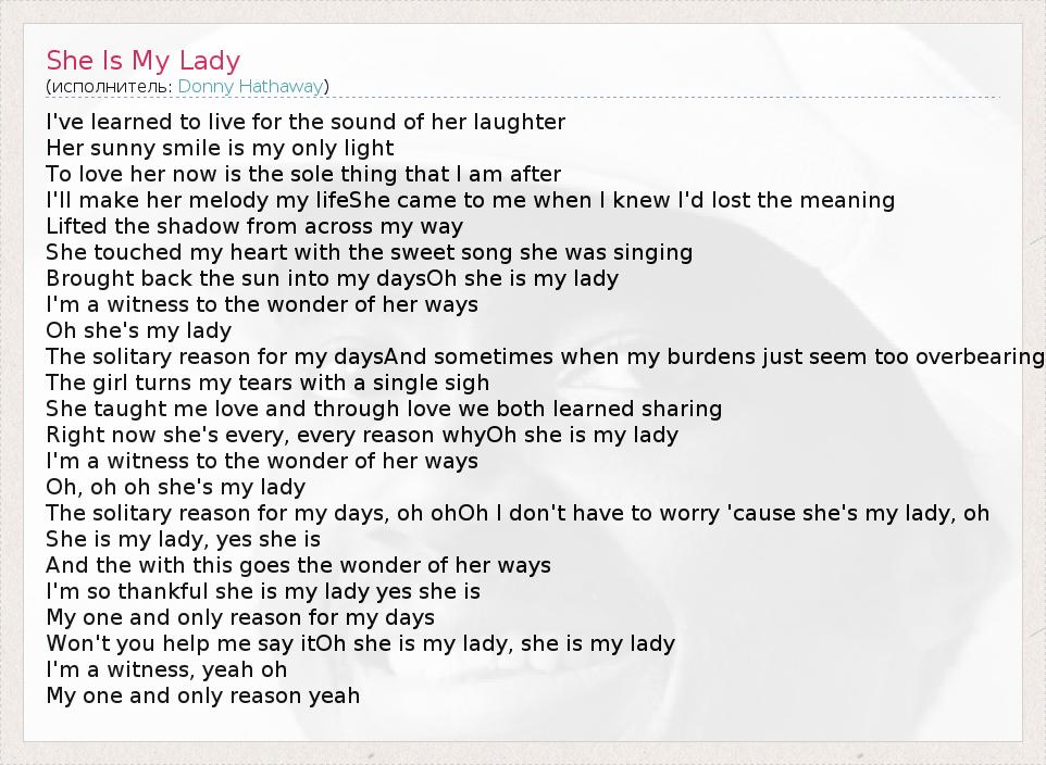 А как ты думаешь, о чем песня "She Is My Lady" ?