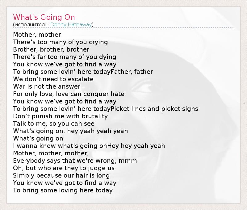 Это интересно:Донни Хэтвэй ( 1 Октября, 1945 - 13 Января, 1979) был Американским соул музыкантом.Он отрудничал с Atlantic Records, и в 1969 году его первый сингл "The Ghetto, Part I" (1970), журнал "Rolling Stone" отметил, как "большой вклад в соул музыку".Сотрудничество с Робертой Флак возвело его на вершины чартов и принесло ему номинацию Грэмми за лучшее поп-шоу "Where Is the Love" в 1973. 13 января 1979 его тело нашли около отеля... продолжение