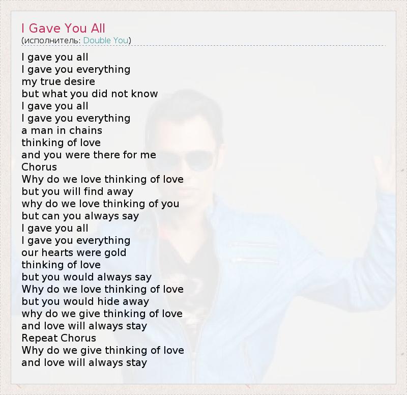 А как ты думаешь, о чем песня "I Gave You All" ?
