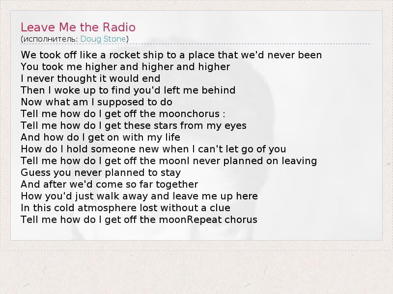 А как ты думаешь, о чем песня "Leave Me the Radio" ?