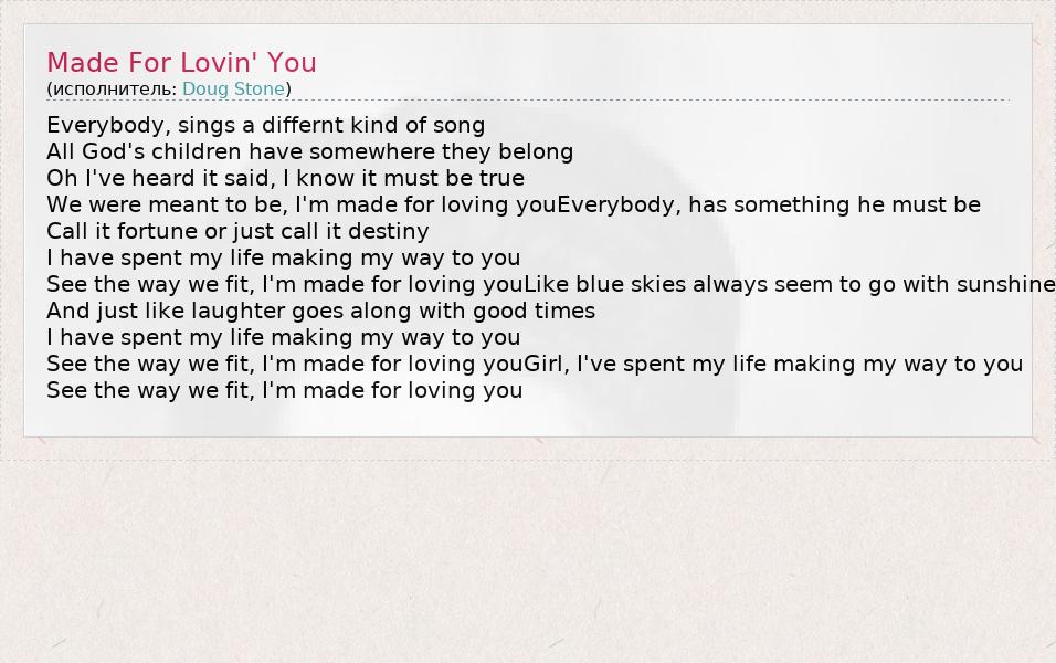 А как ты думаешь, о чем песня "Made For Lovin' You" ?