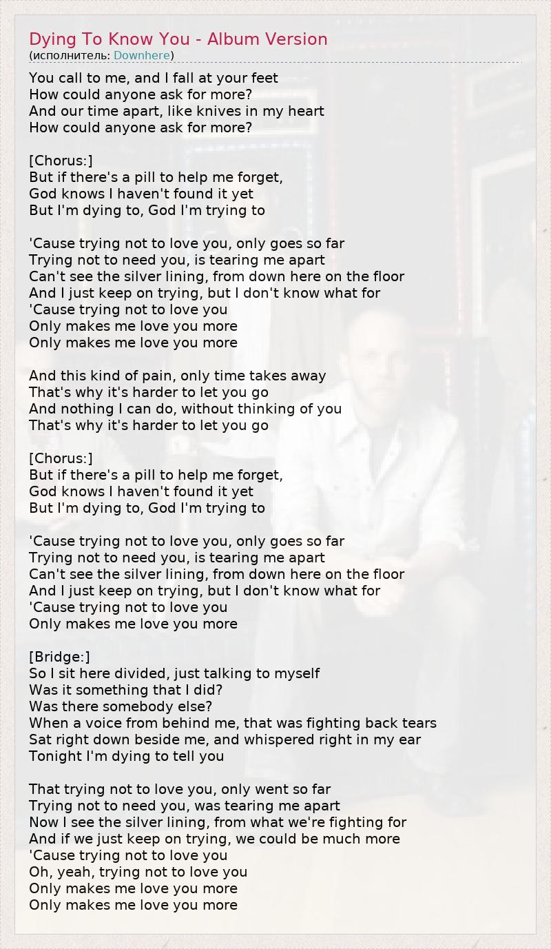 А как ты думаешь, о чем песня "Dying To Know You - Album Version" ?