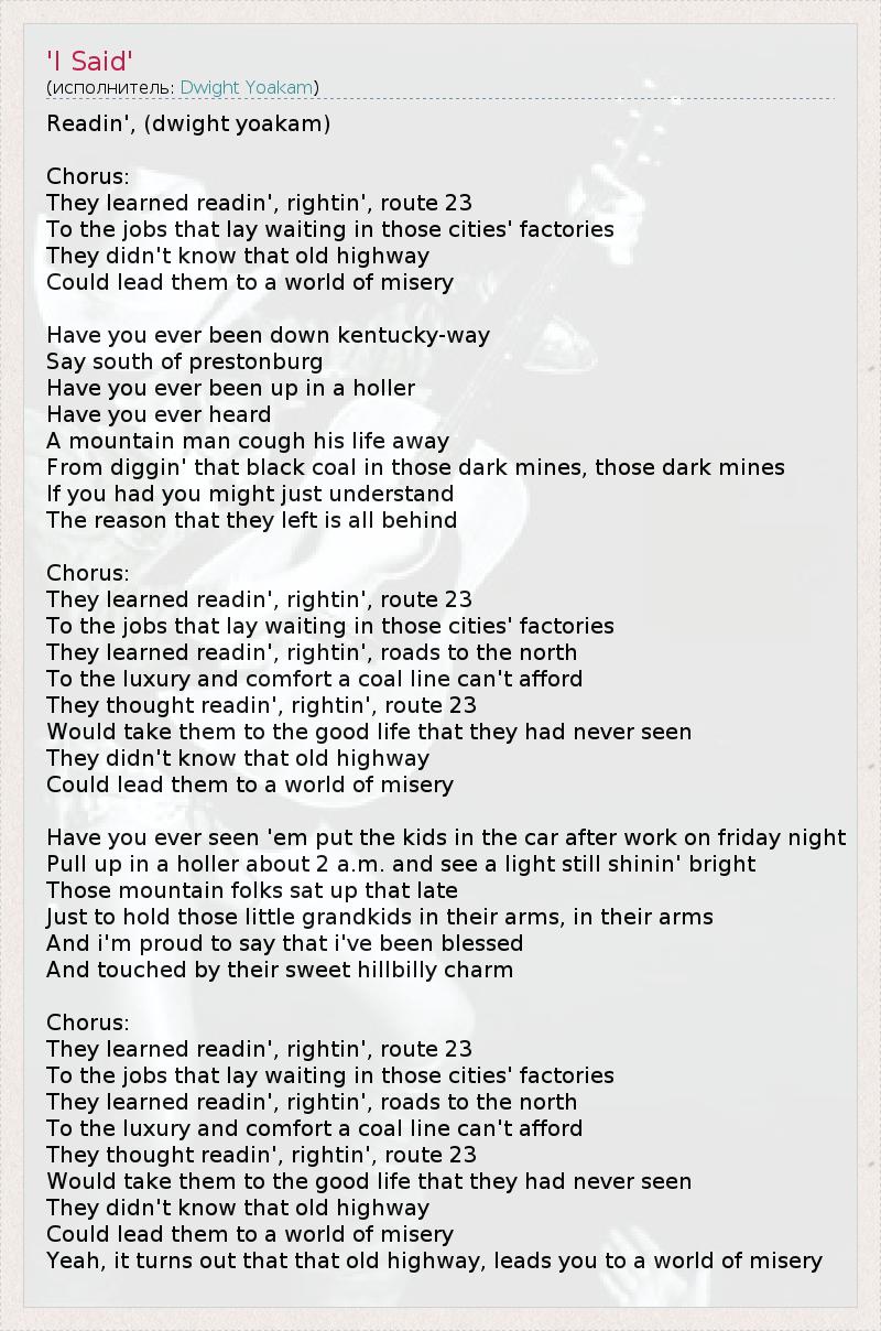 Это интересно:Американский автор и исполнитель песен в стиле кантри Дуайт Дэвид Йокам родился 23 октября 1956 года. Популярный в 1980-х, он записал свыше 20 альбомов и компиляций. Музыкальный журнал «Billboard» занёс более 30 песен Йокама в чарты самых популярных песен кантри – «Hot Country Songs».Йокам родился в городе Пикевиль, Кентукки, в семье Рут Энн и Дэвида Йокама, владельца бензозаправочной станции. Детство... продолжение