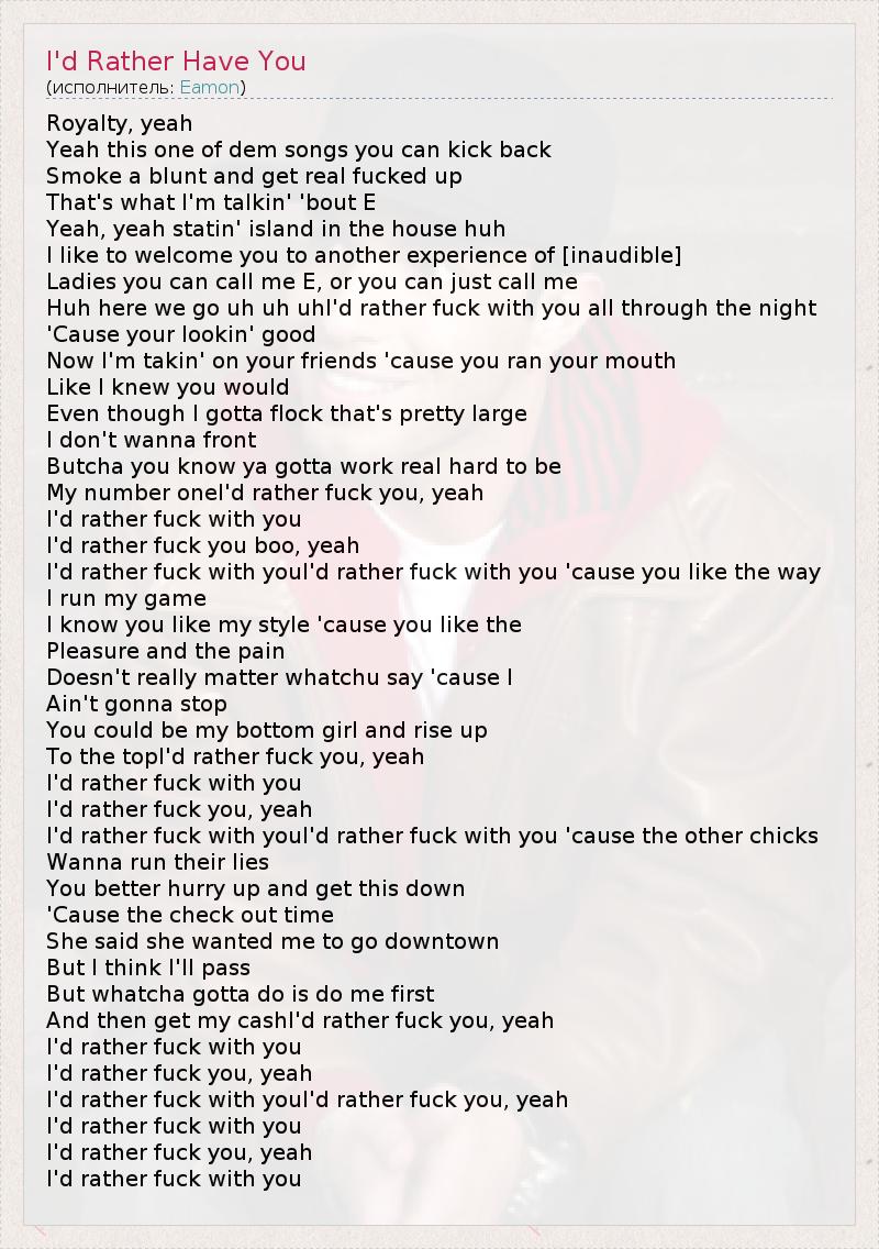 ГлавнаяИсполнителиEamonI'd Rather Have You