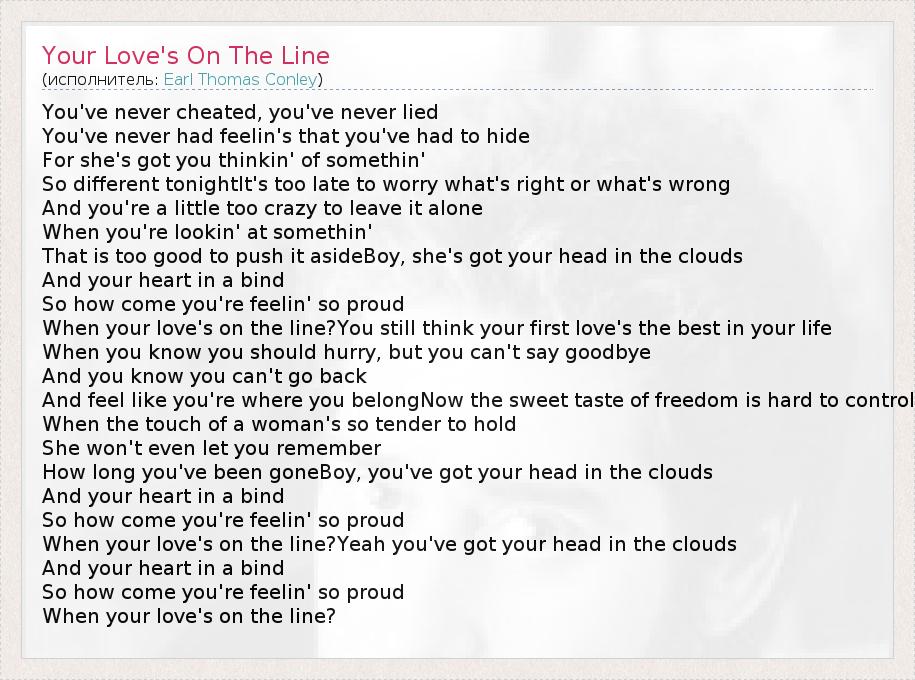 А как ты думаешь, о чем песня "Your Love's On The Line" ?