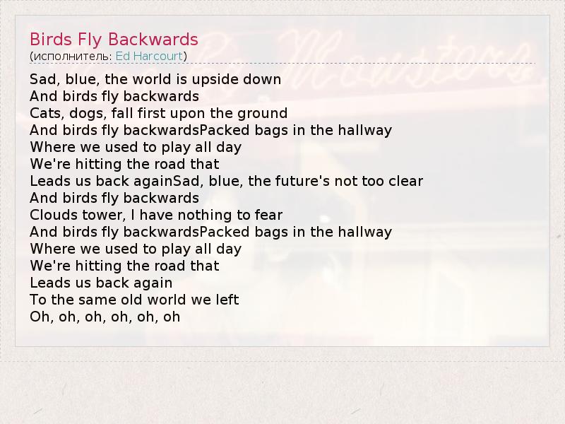 А как ты думаешь, о чем песня "Birds Fly Backwards" ?