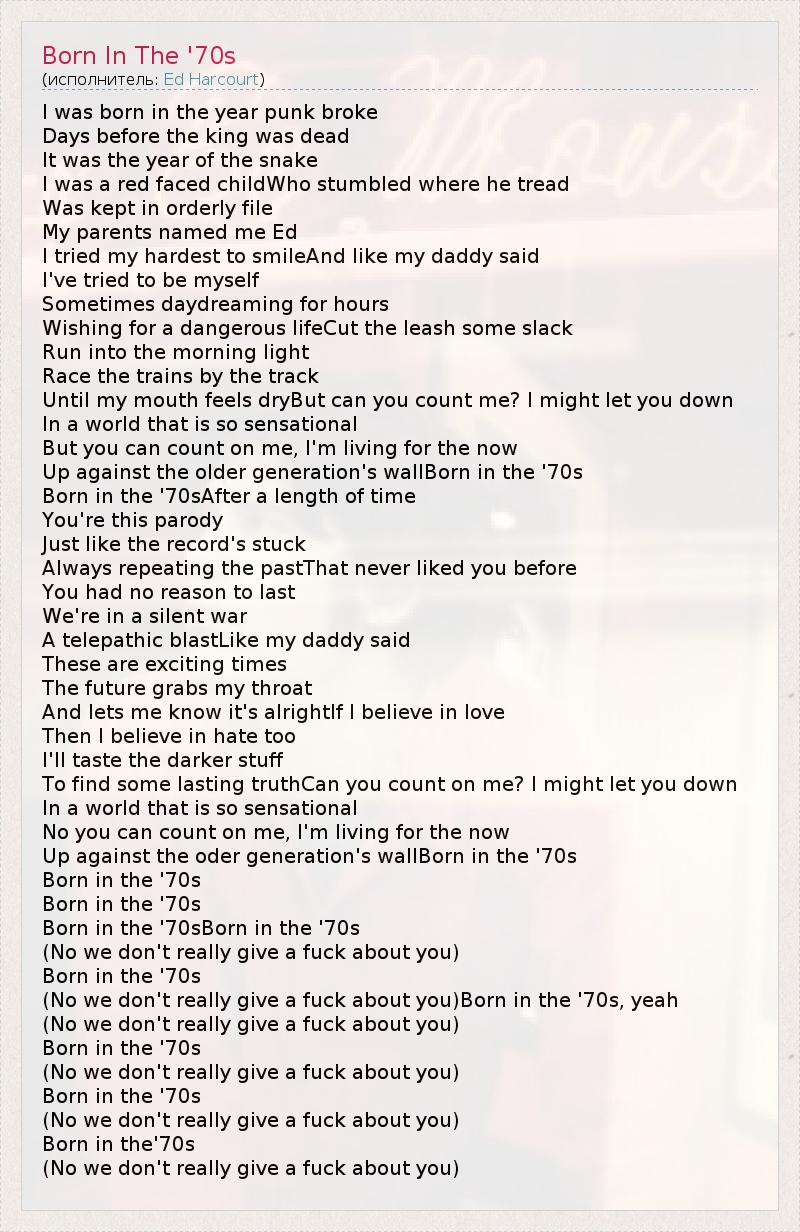 А как ты думаешь, о чем песня "Born In The '70s" ?