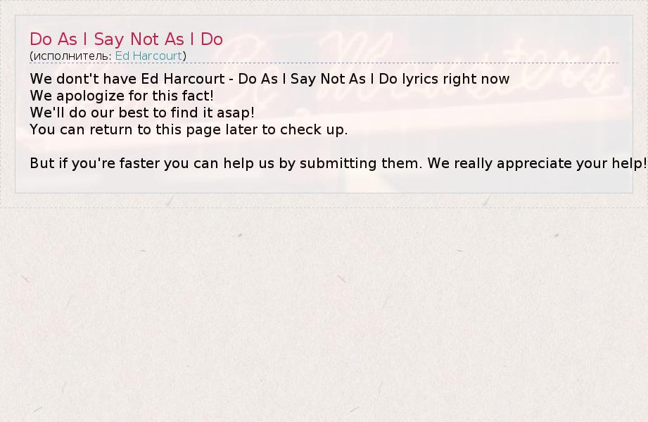 We dont't have Ed Harcourt - Do As I Say Not As I Do lyrics right now