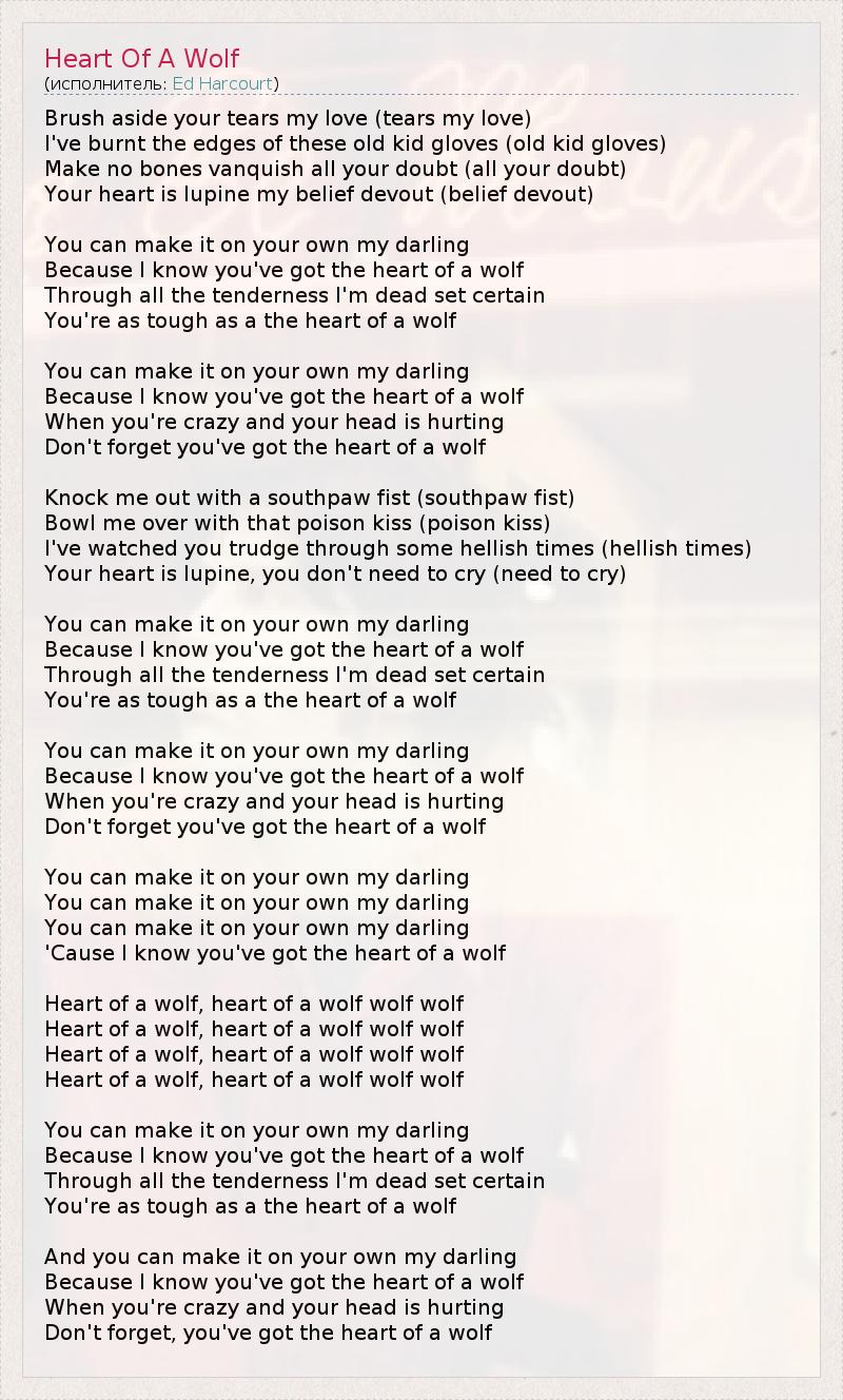 А как ты думаешь, о чем песня "Heart Of A Wolf" ?