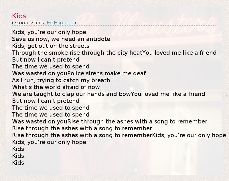 А как ты думаешь, о чем песня "Kids" ?