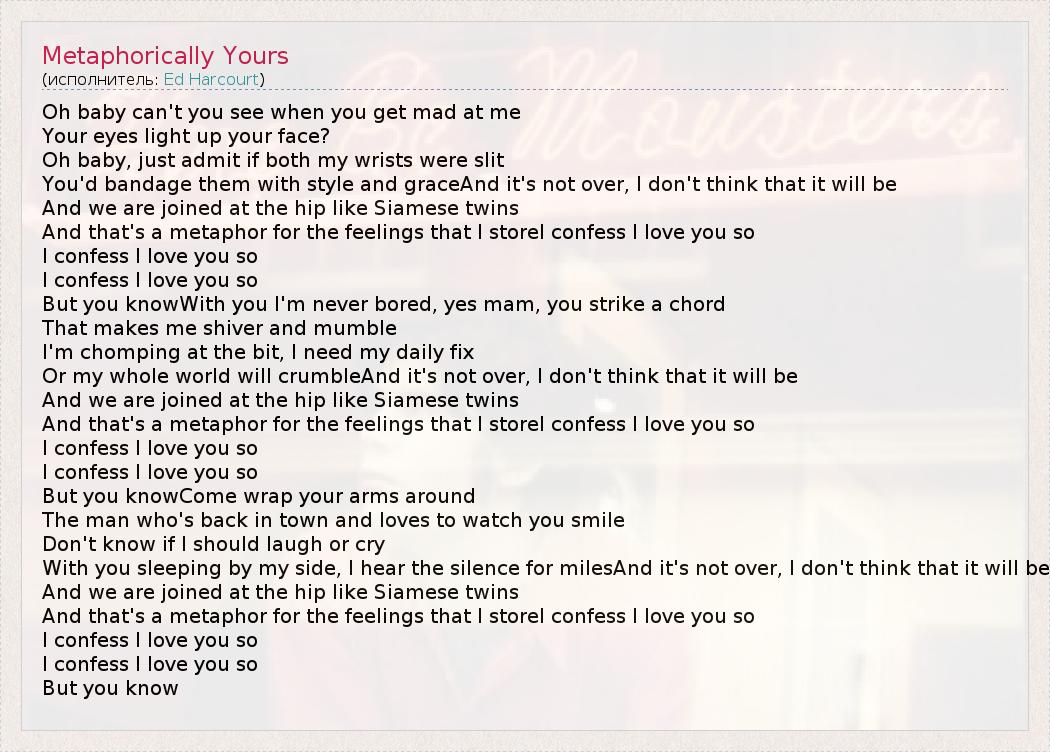 А как ты думаешь, о чем песня "Metaphorically Yours" ?