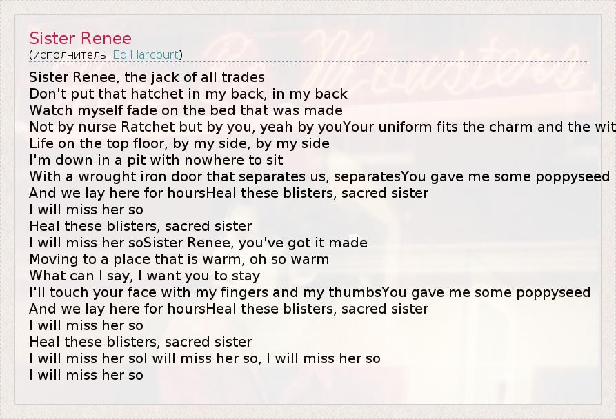 А как ты думаешь, о чем песня "Sister Renee" ?