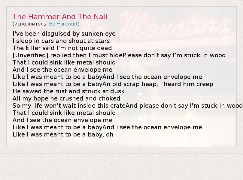 А как ты думаешь, о чем песня "The Hammer And The Nail" ?