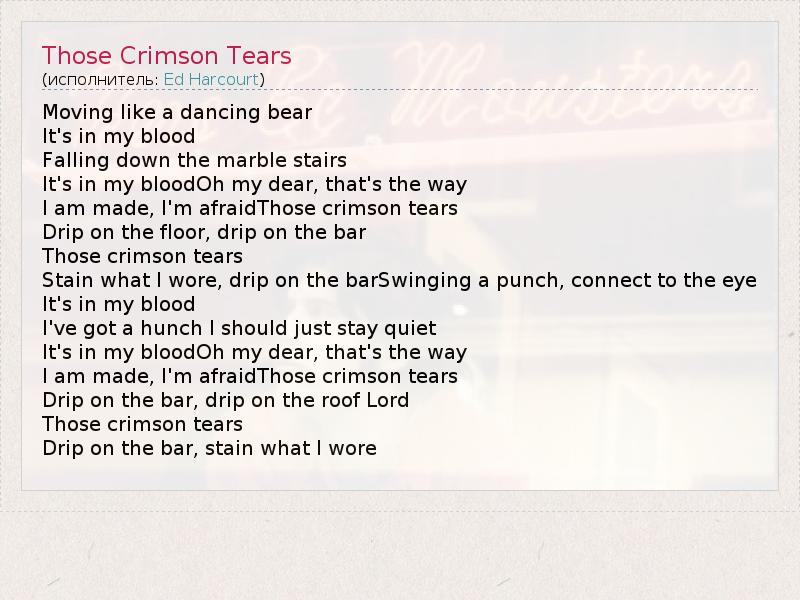 А как ты думаешь, о чем песня "Those Crimson Tears" ?