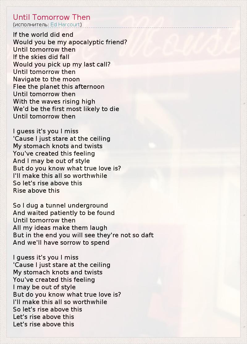А как ты думаешь, о чем песня "Until Tomorrow Then" ?