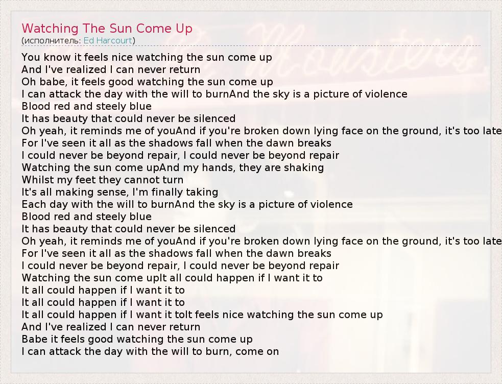 ГлавнаяИсполнителиEd HarcourtWatching The Sun Come Up