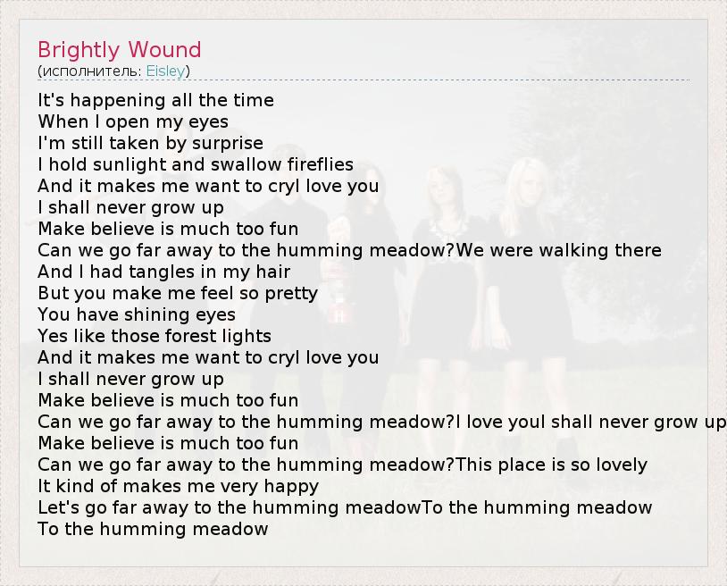 А как ты думаешь, о чем песня "Brightly Wound" ?