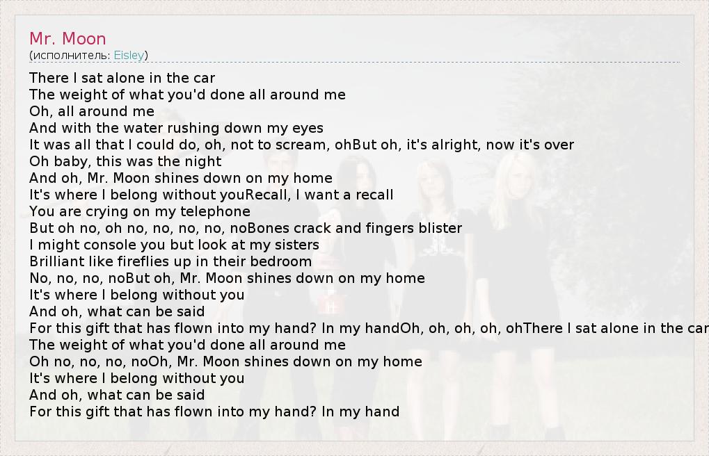 А как ты думаешь, о чем песня "Mr. Moon" ?