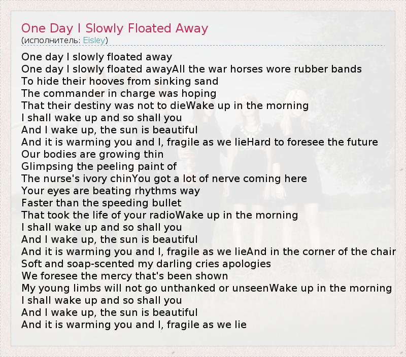 А как ты думаешь, о чем песня "One Day I Slowly Floated Away" ?