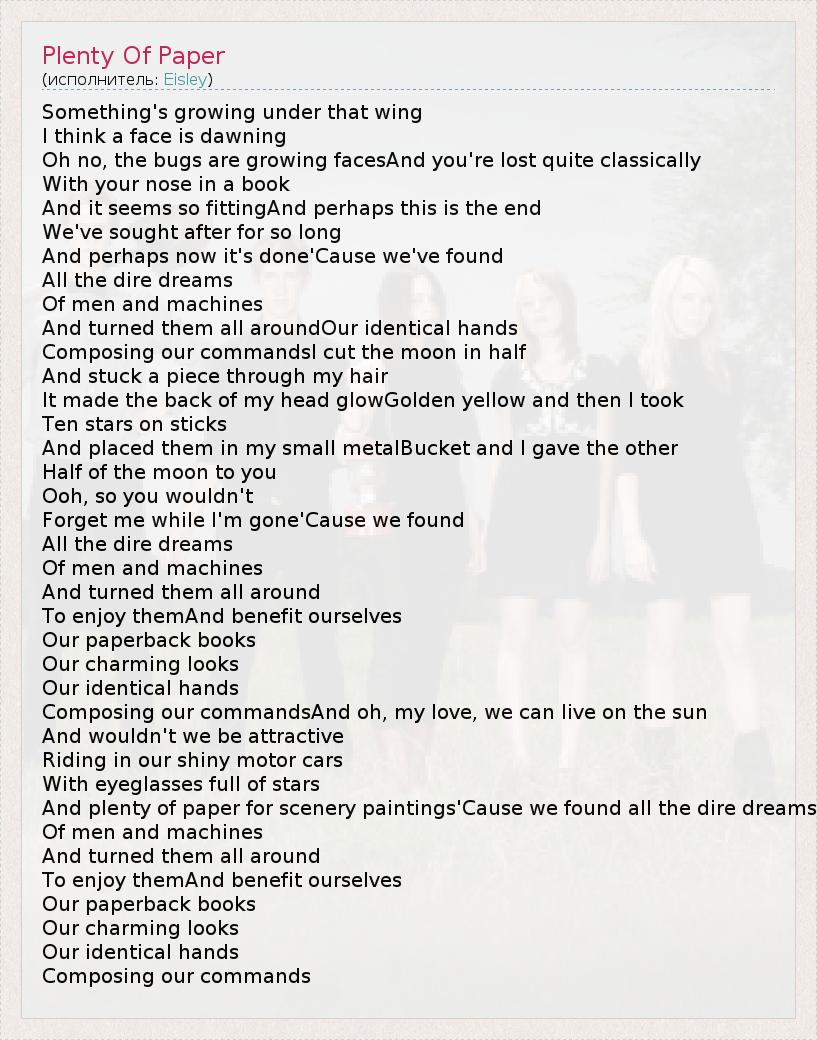 А как ты думаешь, о чем песня "Plenty Of Paper" ?