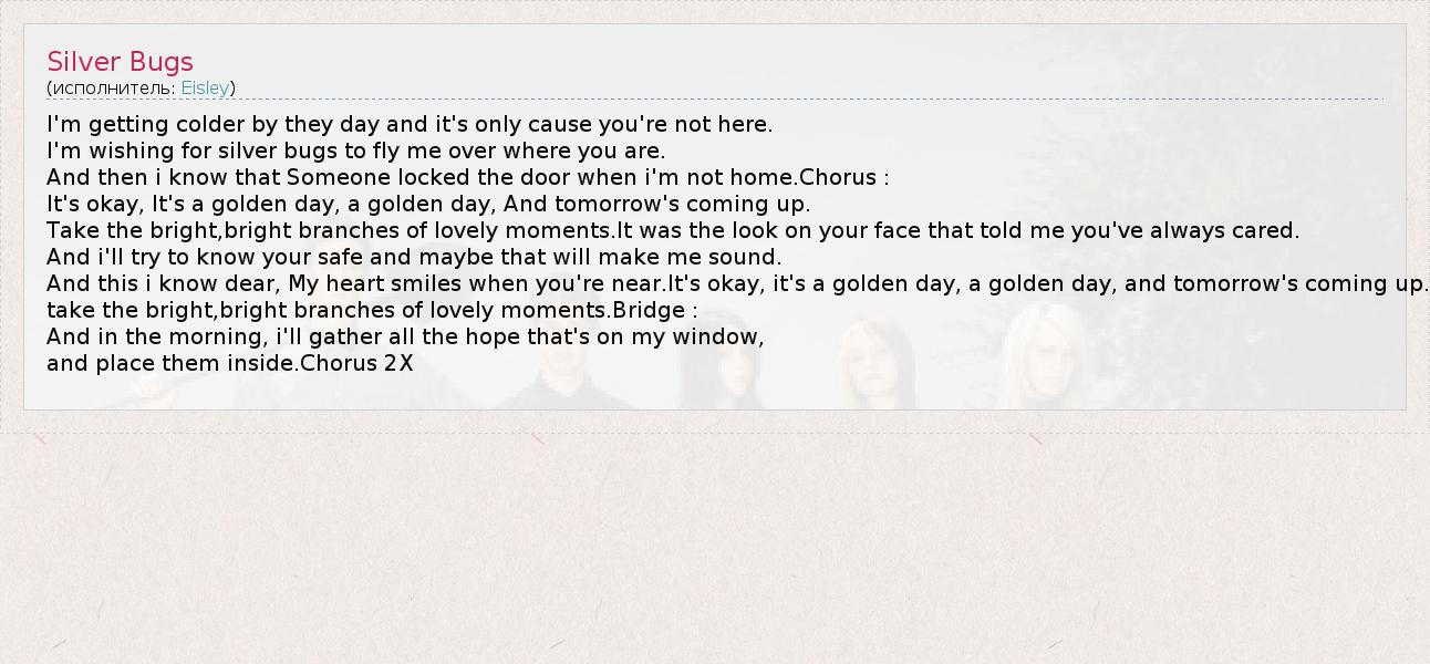 А как ты думаешь, о чем песня "Silver Bugs" ?