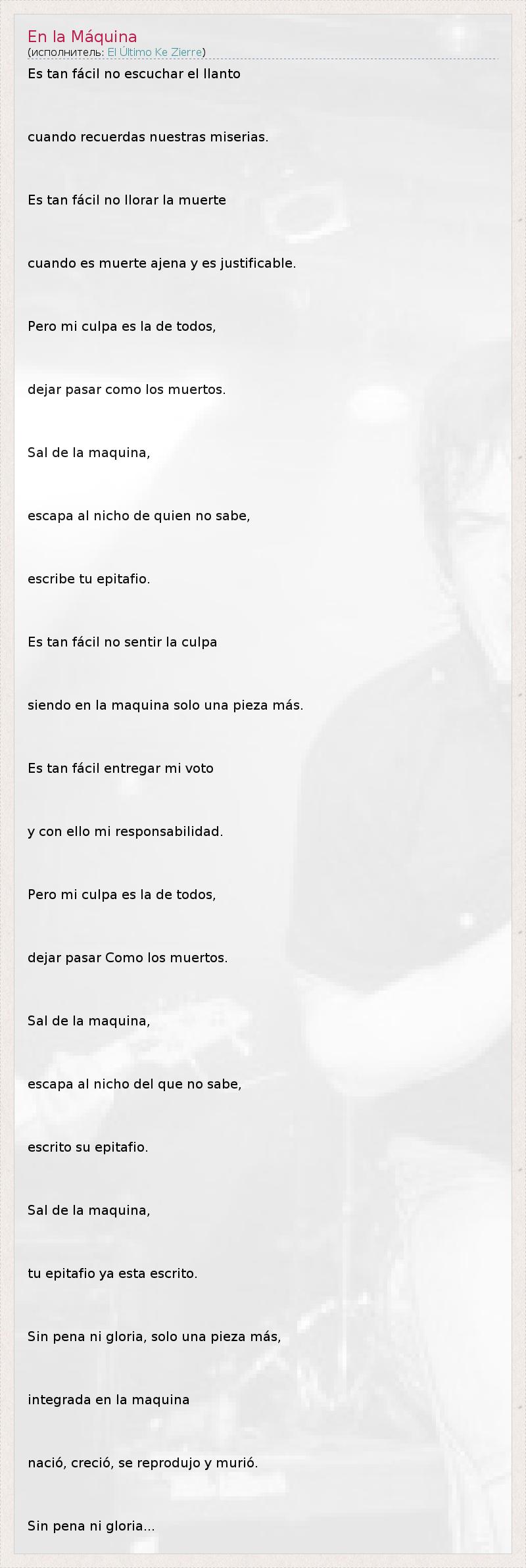 А как ты думаешь, о чем песня "En la Máquina" ?