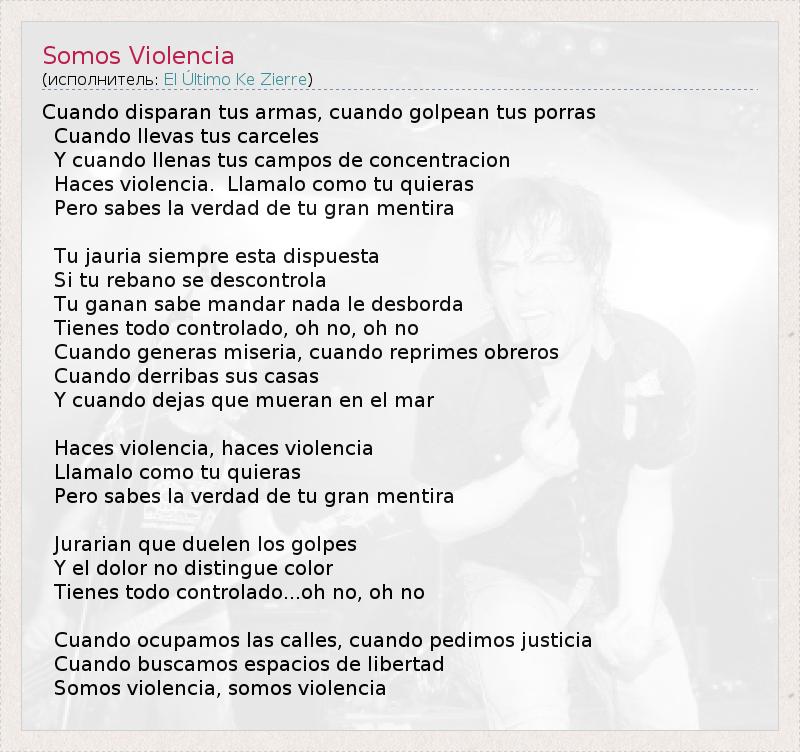 А как ты думаешь, о чем песня "Somos Violencia" ?