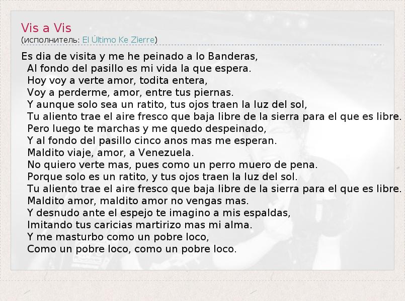 А как ты думаешь, о чем песня "Vis a Vis" ?