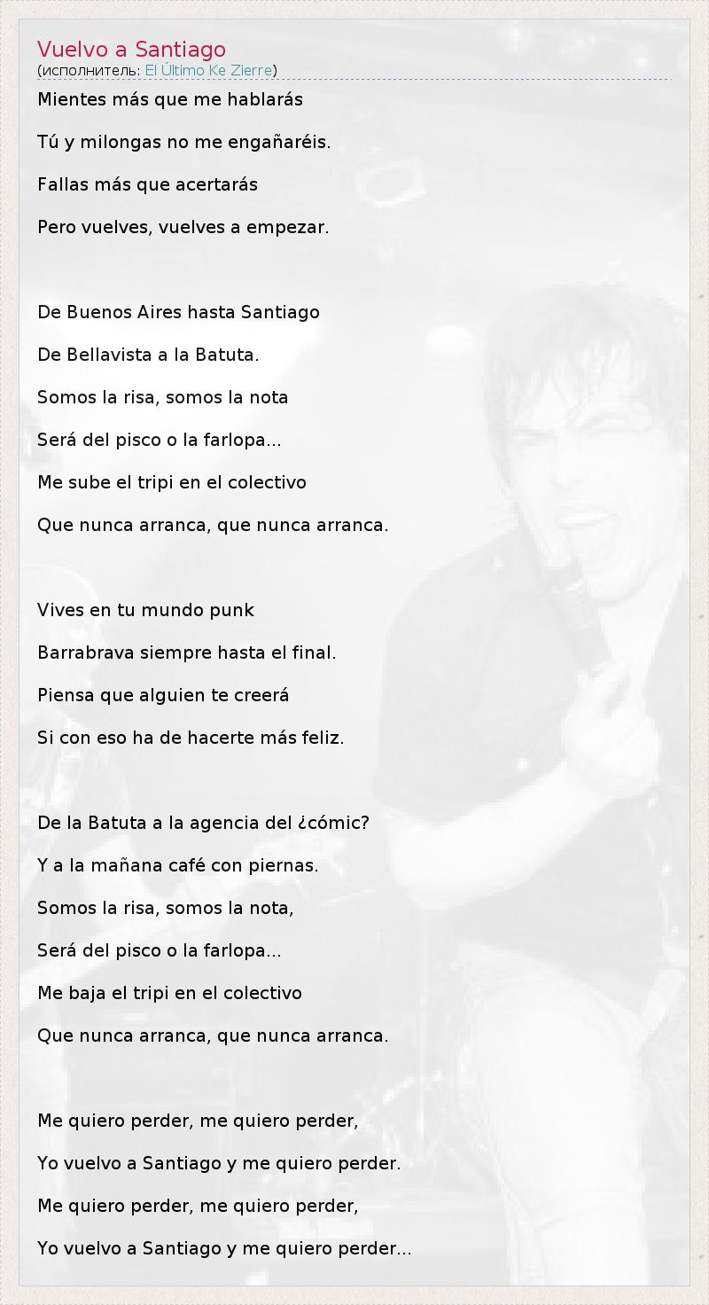 А как ты думаешь, о чем песня "Vuelvo a Santiago" ?
