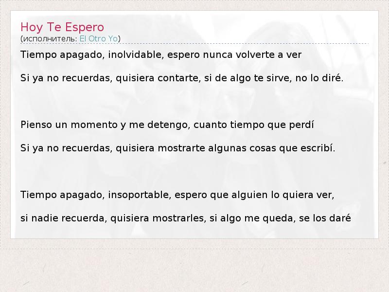 А как ты думаешь, о чем песня "Hoy Te Espero" ?