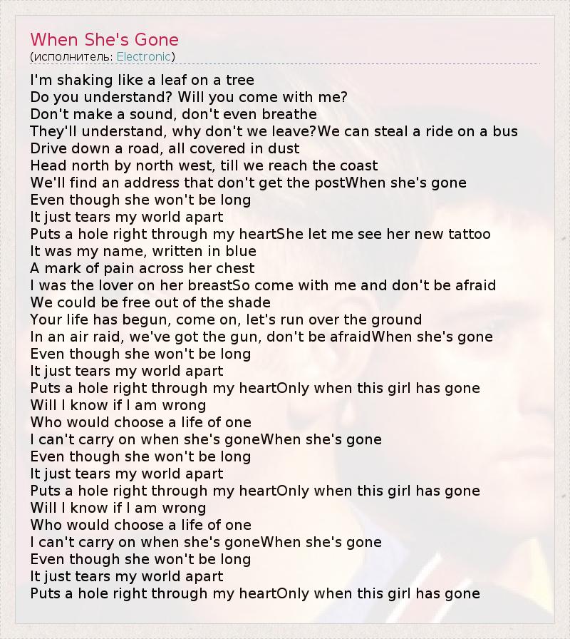 А как ты думаешь, о чем песня "When She's Gone" ?