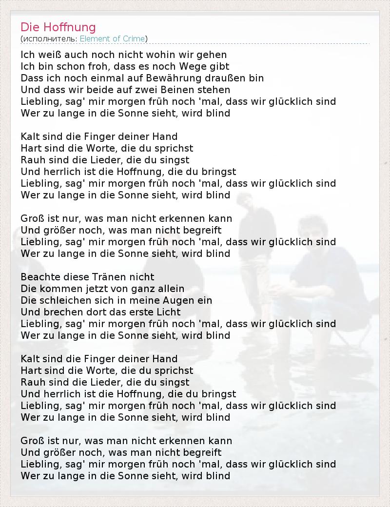 А как ты думаешь, о чем песня "Die Hoffnung" ?