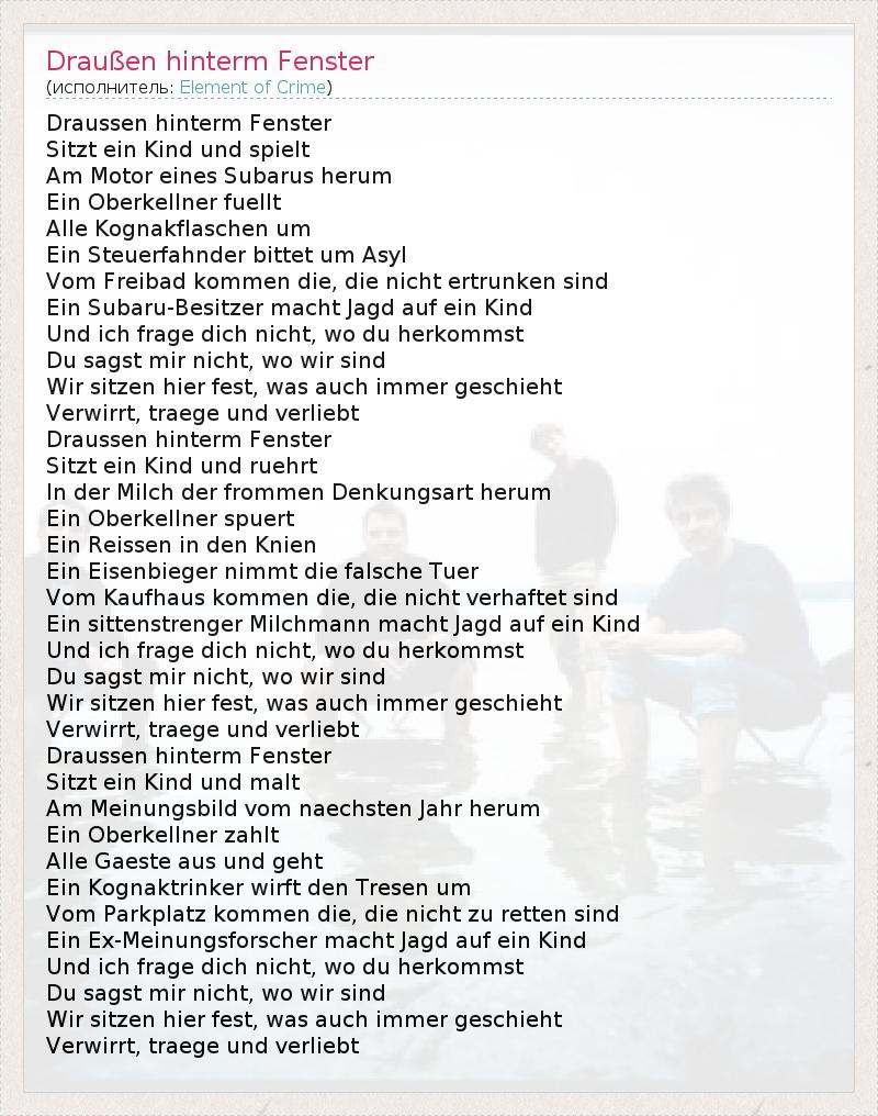 А как ты думаешь, о чем песня "Draußen hinterm Fenster" ?