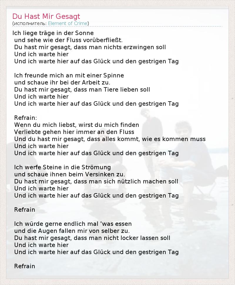 А как ты думаешь, о чем песня "Du Hast Mir Gesagt" ?