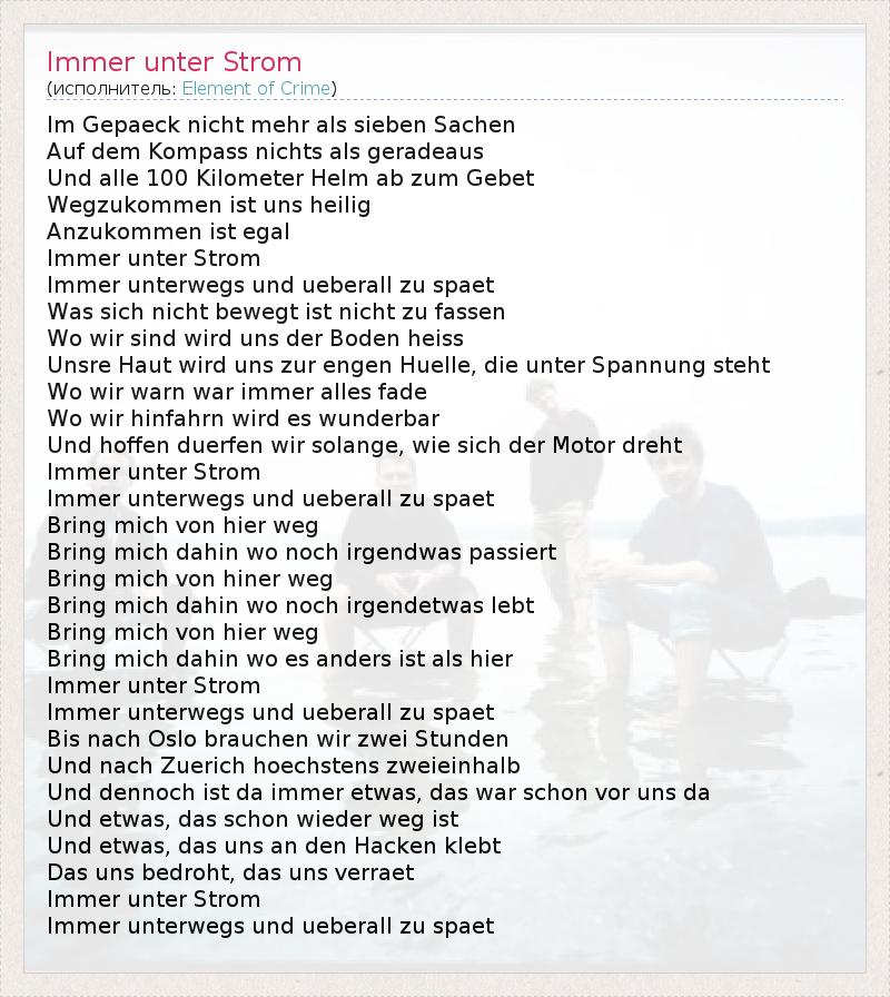 А как ты думаешь, о чем песня "Immer unter Strom" ?