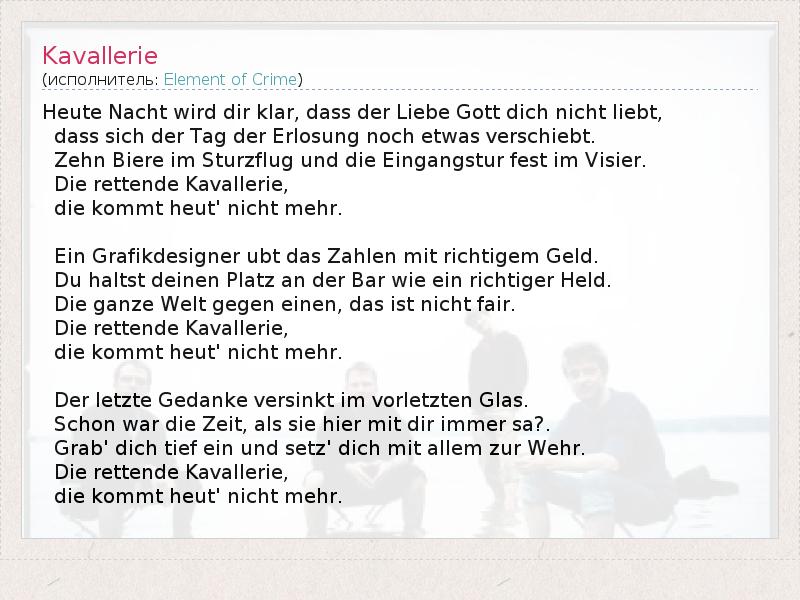А как ты думаешь, о чем песня "Kavallerie" ?