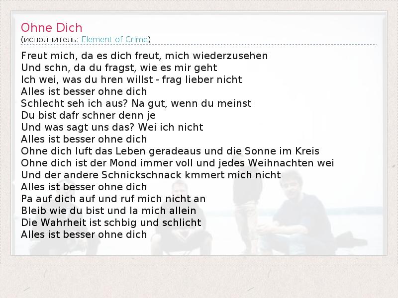 А как ты думаешь, о чем песня "Ohne Dich" ?