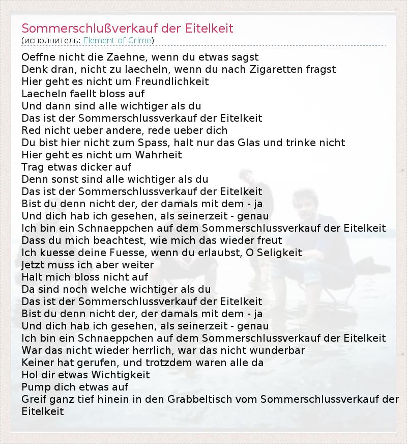 А как ты думаешь, о чем песня "Sommerschlußverkauf der Eitelkeit" ?
