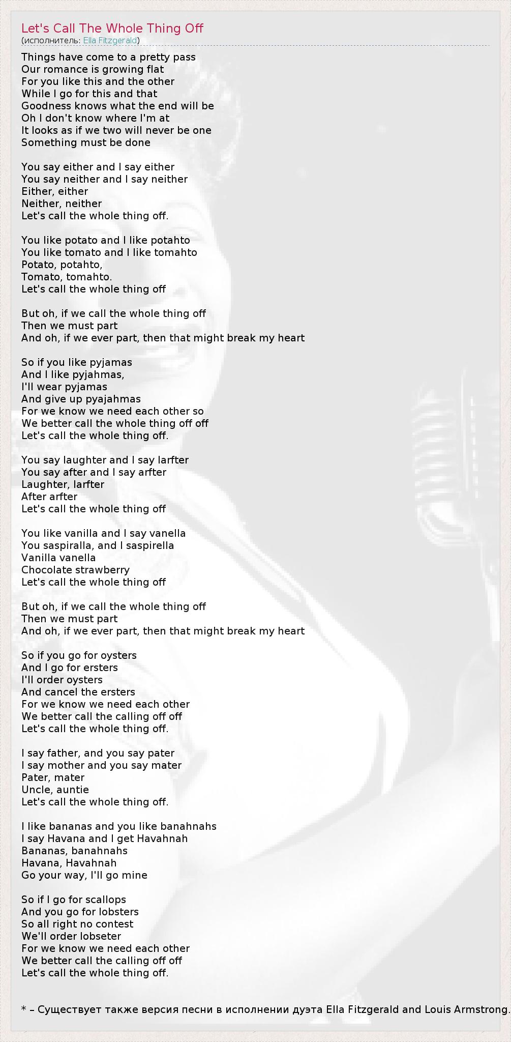 А как ты думаешь, о чем песня "Let's Call The Whole Thing Off" ?