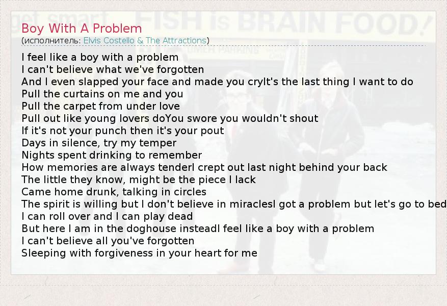 А как ты думаешь, о чем песня "Boy With A Problem" ?