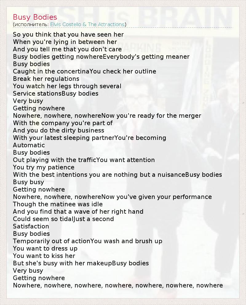 А как ты думаешь, о чем песня "Busy Bodies" ?