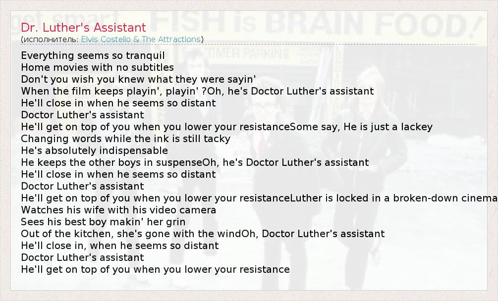 А как ты думаешь, о чем песня "Dr. Luther's Assistant" ?
