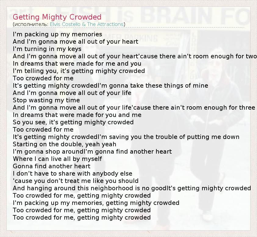 А как ты думаешь, о чем песня "Getting Mighty Crowded" ?
